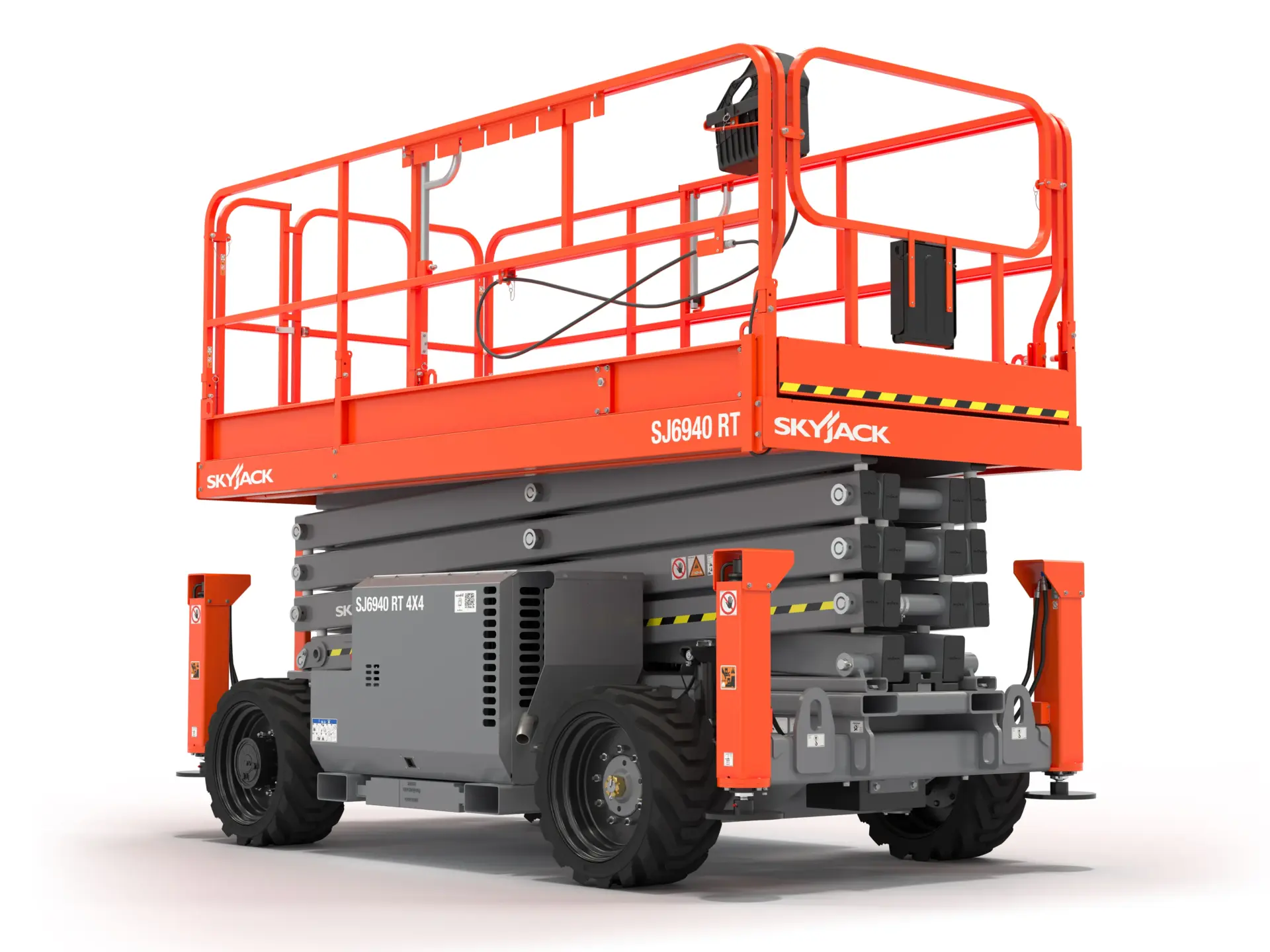 Skyjack SJ6940 RT er en kraftfuld og terrængående saxlift, der er udviklet til professionelle brugere, som arbejder i ujævnt terræn og stiller høje krav til stabilitet, løftekapacitet og driftssikkerhed. Med robust konstruktion og stærk terrængående drivkraft klarer denne model både byggepladsens udfordringer og tunge løfteopgaver – uden at gå på kompromis med komfort eller produktivitet.